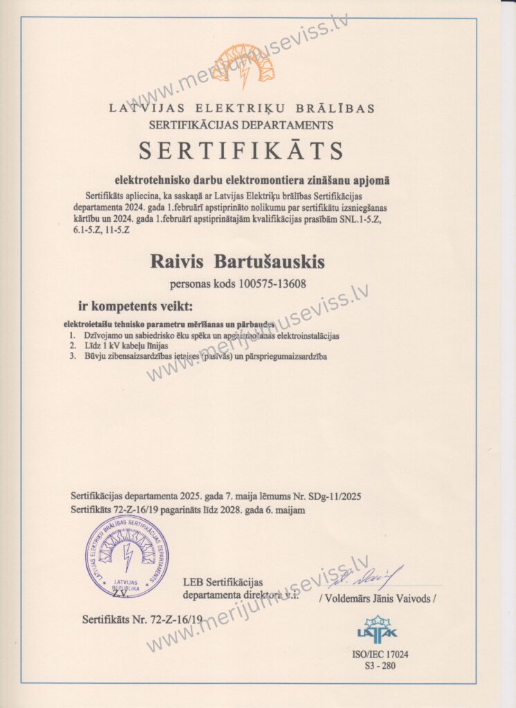 Mēs esam sertificēti speciālisti ar pieredzi elektroinstalācijas mērījumos un dokumentācijas sagatavošanā. Nodrošinām drošību un atbilstību normatīvajām prasībām gan jaunbūvēm, gan jau ekspluatācijā esošām ēkām.